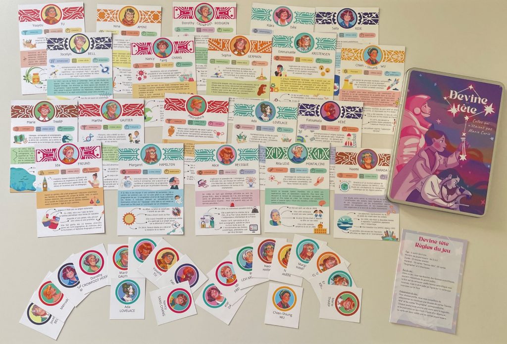 Dans ce jeu, vous représentez des femmes scientifiques, souvent méconnues du grand public. Le but est de retrouver quelle femme scientifique vous incarnez, c’est-à-dire celle qui figure sur la carte que vous avez sur le front.