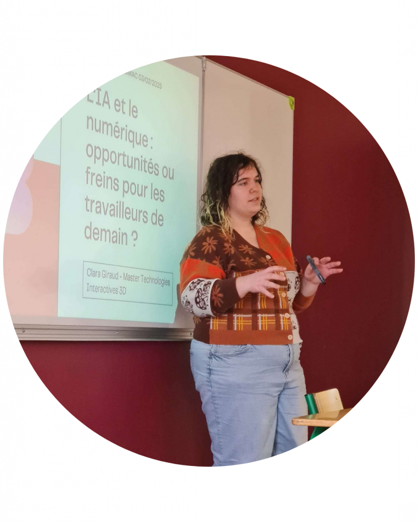 Elle est doctorante en réalité virtuelle et augmentée, rattachée au laboratoire Angevin de Mécanique, Procédés et innovAtion (LAMPA) au cœur du campus Arts et Métiers de Laval.