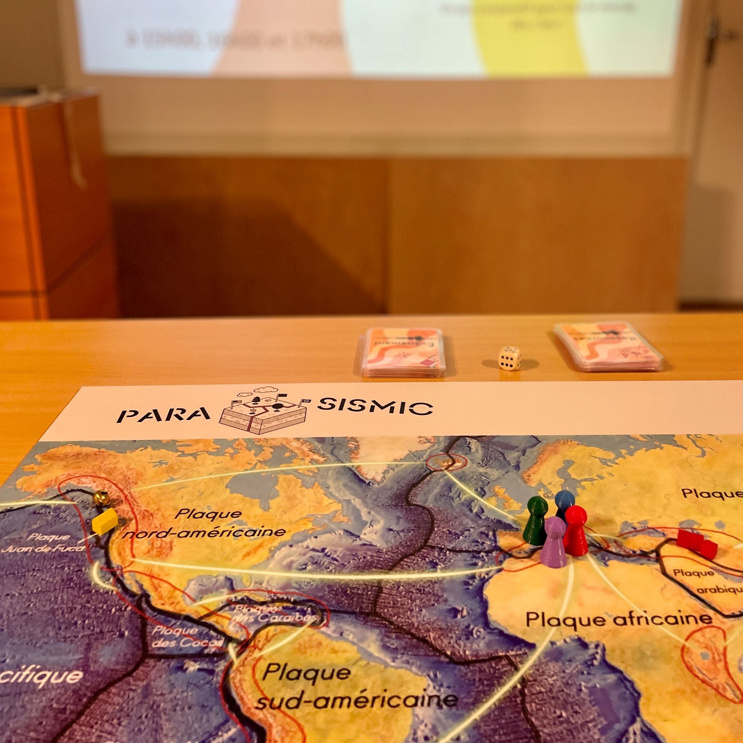 Le jeu Parasismic ne fait pas partie de nos malles pédagogiques, mais il peut être emprunté ou dupliqué à la demande. N’hésitez pas à nous contacter au 02 43 49 47 81 et à centrederessources@zoom.laval.fr.